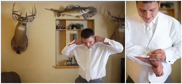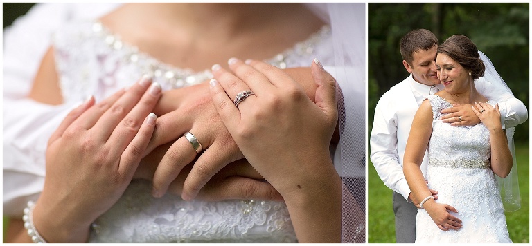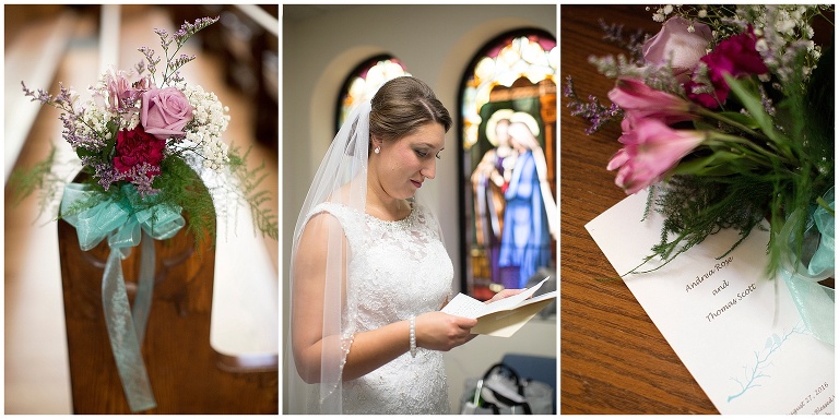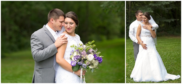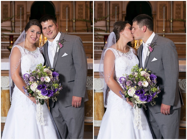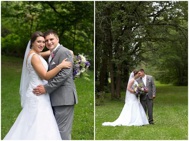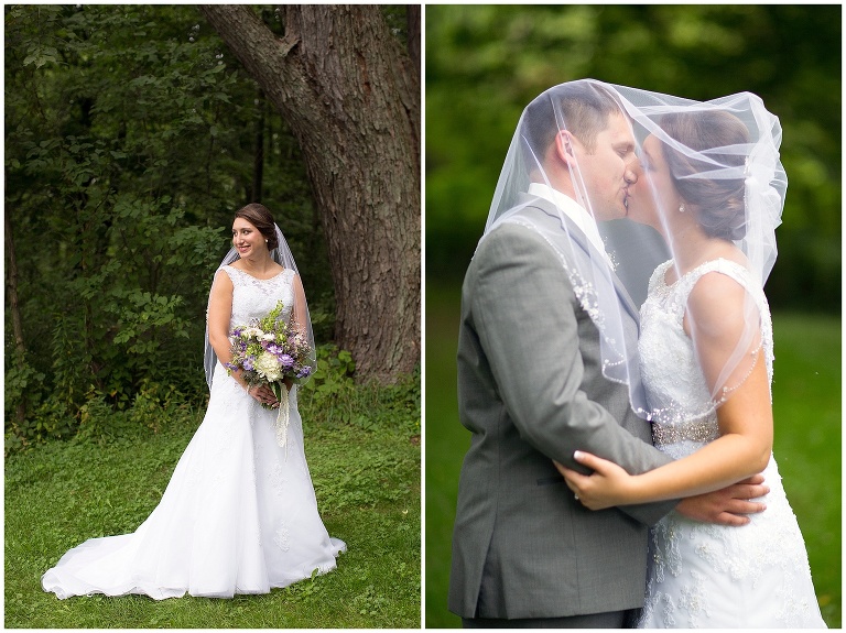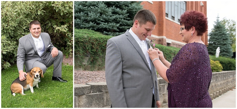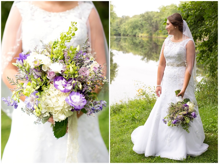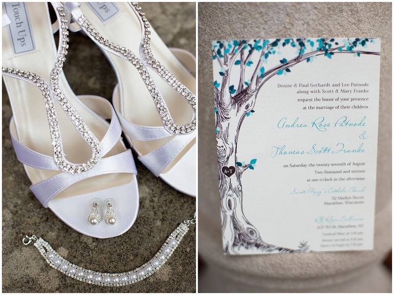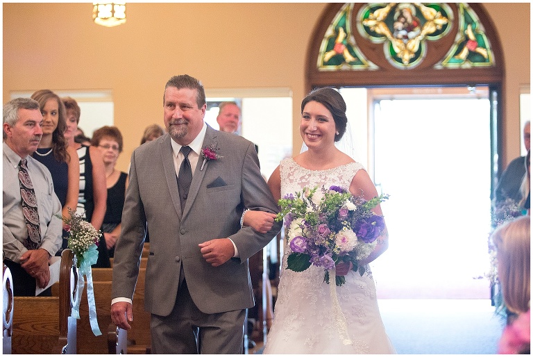 Andrea + Tom were married on August, 26 in Marathon City. Their wedding was such a fun day to be part of. Not only was is a great wedding day, but Tom is my husband’s cousin, so it is always fun to photograph a family wedding! (Even if they heckle me a bit :)) The day started out with Tom getting ready at home with his family and beagle and a few happy tears and sweet moments from Andrea and girls. So, it was a pretty great start to the day 🙂 Andrea + Tom said their vows in the beautiful church across the street from were Tom grew up. The girls carried hand-tied purple bouquets that were just breathtaking in person. Following their ceremony, we took photos along the Rib River and everyone put up with some swarms of mosquitoes! But you’ll have that in the summer in Wisconsin. The whole day was beautiful and the love that everyone had for the couple was very evident. Andrea + Tom celebrated their love for each other and family and created a relaxed and warm, country feel to their day. Congratulations you two! I hope married life is treating you well!