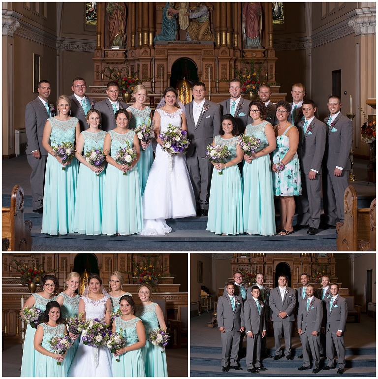 Ceremony Venue – St. Mary’s Catholic Church :: Reception Venue – Rib River Ballroom :: Florist – Inspired by Nature :: DJ – Over the Top Entertainment :: Cake – Lisa’s Sweet Shoppe Bakery :: Bride’s Dress – The Bridal Event :: Makeup – Studio E :: Invitations – 129 Design LLC :: Bridesmaid Dresses – The Bridal Event :: Tuxes – Elegant Occassions :: Second Photographer – Photography by Tina