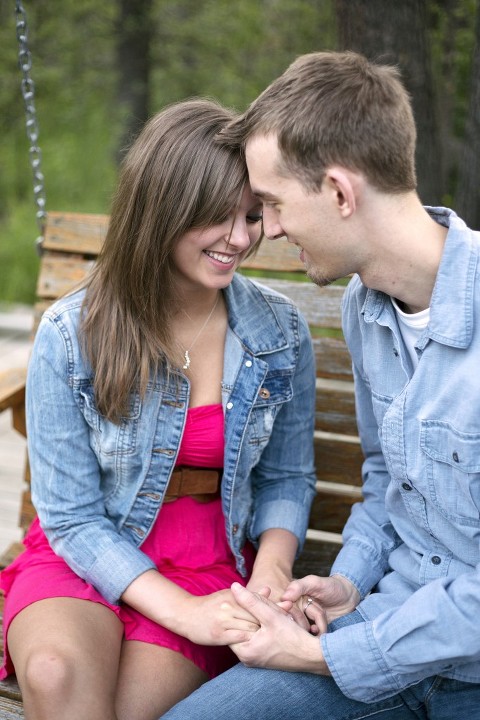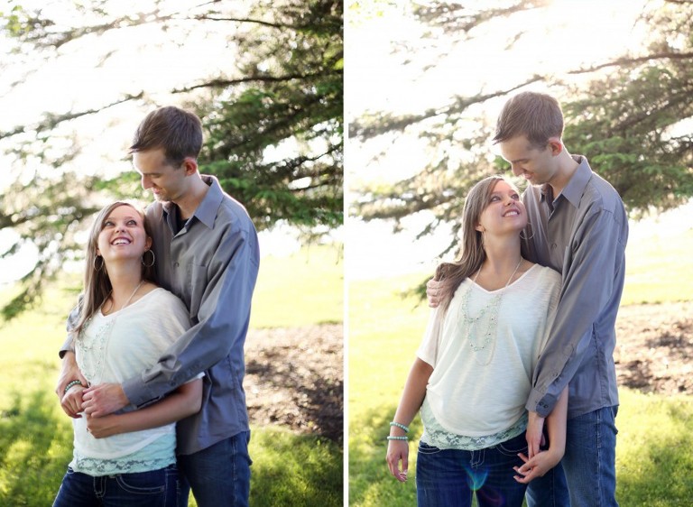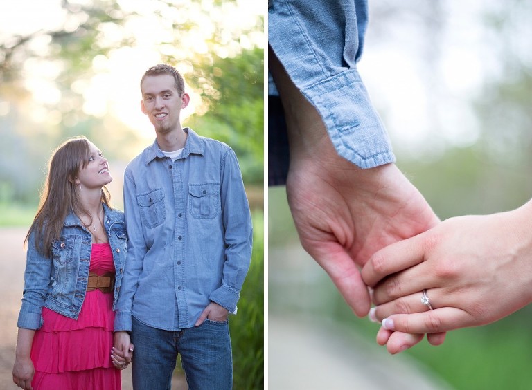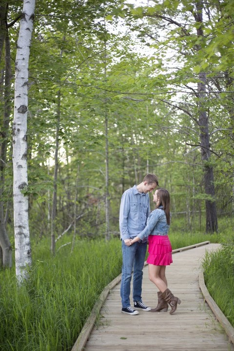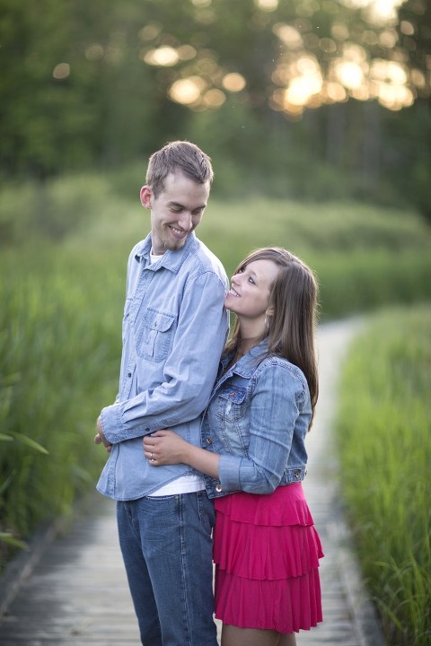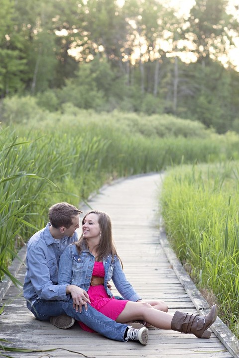 I met Billie + Dan in Stevens Point in the square in front of the ice cream shop, which is a pretty good landmark to meet at 🙂 We spent the evening exploring downtown Point and the park near the river. After downtown we headed to the Schmeeckle Reserve to take photos in the green grass and on the boardwalks. I think every mosquito in Stevens Point wanted to be in the pretty green grass too. But you would never know by looking at the photos that a swarm was buzzing us during the shoot! Billie + Dan didn’t seem to be bothered by them and spent the last minutes of the gorgeous sunlight being the cute engaged couple that they are. I’m looking forward to Billie + Dan’s wedding in Summer of 2014!