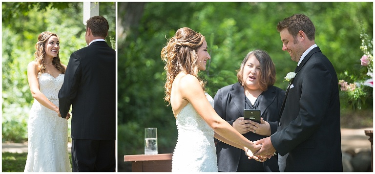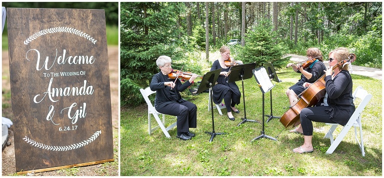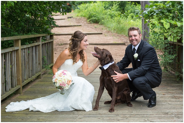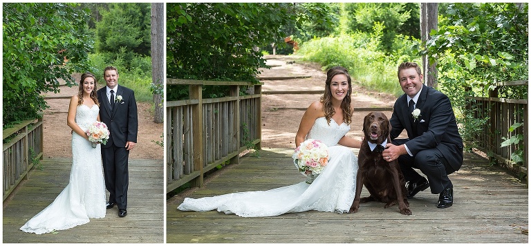 On a June Saturday, Amanda + Gil were married at the Caribou Bay Retreat. Like most June days this summer, it was pretty and sunny and then a little bit rainy, but still gorgeous. Amanda + Gil live in the woods and planned a wedding that reflected their love of the outdoors. They had a relaxed celebration in the pines surrounding the retreat. They enjoyed lawn games, a shrimp boil and dancing with the family and friends. Their dog even there to help them celebrate 🙂 Amanda’s Grandfather serenaded them for their first dance that he had been singing for Amanda since she was a kid. These two are a such a sweet couple and it was so fun to get to know them through their engagement and wedding!