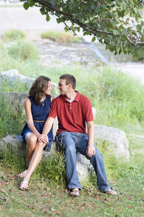 I don’t know what it is about Pamperin Park in Green Bay, but every engagement session I have photographed there has been great. I met Katie + Kyle at the park on a Friday afternoon for their engagement session. They were so much fun…. and funny. You can tell they have a blast together! Their engagement session was silly (I learned what jorts are… but they aren’t pictured in this blog:) ) and sweet. It was so nice getting to know them before their 2014 wedding! I know it will be a great one!