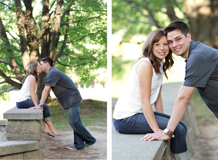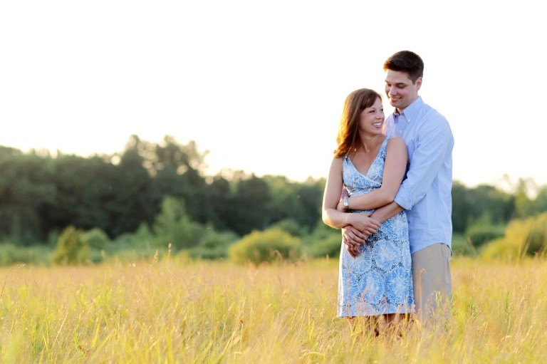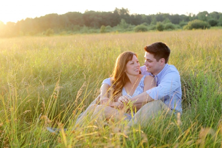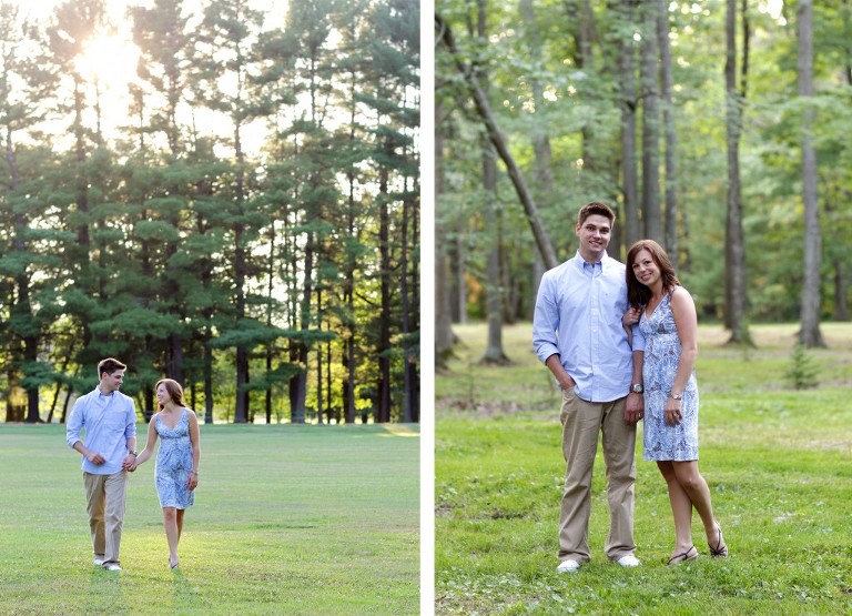 I have so been looking forward to sharing Katie + Ryan’s Marshfield engagement session! Gorgeous couple + gorgeous light… doesn’t get much better! Plus, I’ve gotten to know Katie and Ryan over the past year, so their engagement session was pretty much an evening hanging out with friends… but in lovely woods and a sun-drenched field 🙂 They were so great to photograph and totally willing to wade through tall grass and swat mosquitoes for awesome photos. (Thanks guys!) I can’t wait to photograph their November wedding!!!
