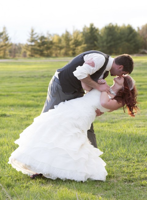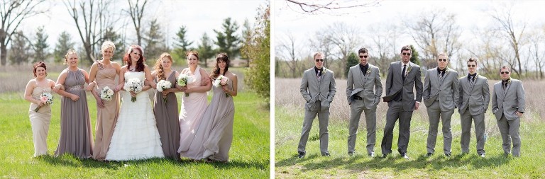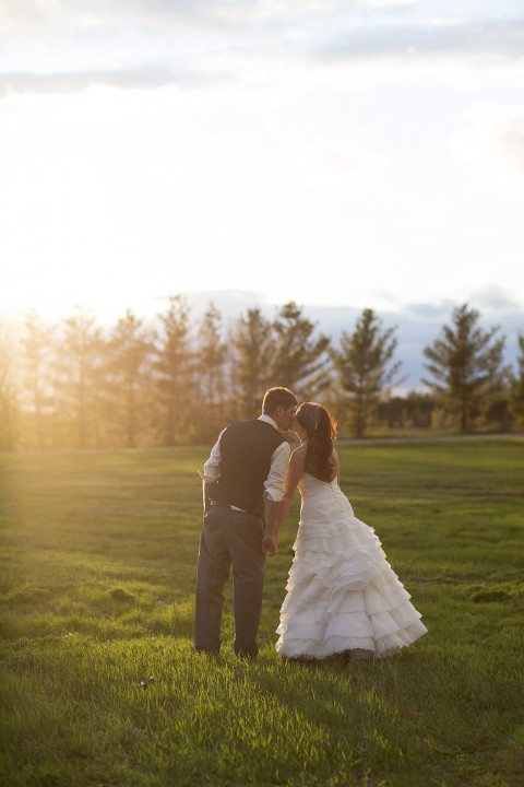 Kayleigh + Tyler got married on a gorgeous spring day in early May. It was one of those spring Wisconsin days, where it is windy and sunny and then calm and then cloudy and then sunny again all in three minutes… but despite that, still a perfect spring day for a wedding with pretty clouds and bright green grass. They held their wedding at Smiley’s Bar in Grill in Plover, which is a great venue if you want to take wedding photos in a gorgeous field as the sun sets, which is what we did 🙂 Kayleigh + Tyler’s wedding was so much fun. They had so many personal decorations and sweet touches in the hall as well as outside where they held their ceremony. You could tell that they put a lot of love and work into making their wedding day perfect and unique. Kayleigh + Tyler radiated happiness the whole day. Even when it was a bit windy they snuggled into each other and you would never think by looking at them that it was chilly at all 🙂 Congratulations Kayleigh + Tyler! Happy married life!!!