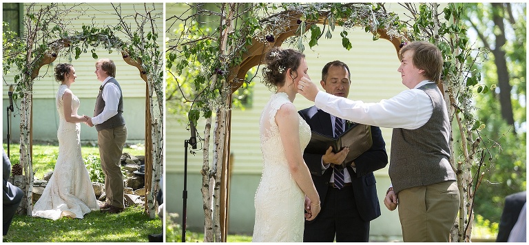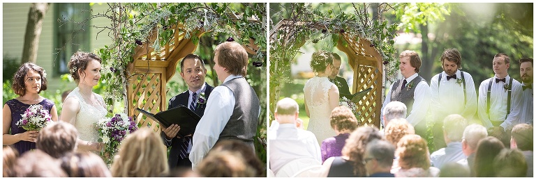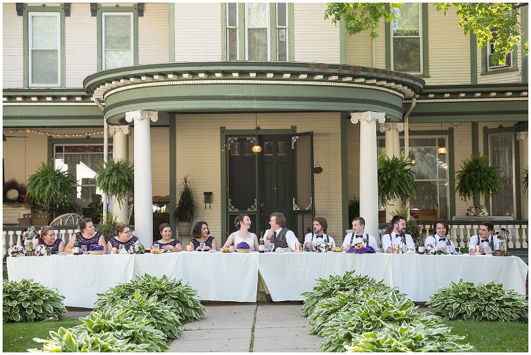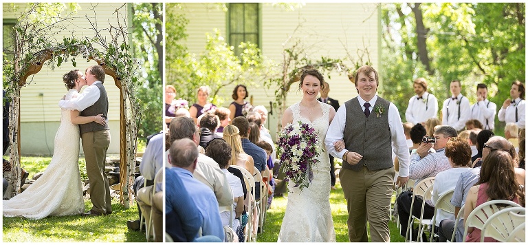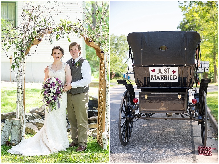 It all started when Sarah + Miles met in 8th grade when Sarah was the “new girl” to the town of Neillsville. After dating through high school and college, Sarah + Miles were married this June, back in Neillsville. Miles grew up in the most beautiful wedding venue in town, Tufts Mansion,which is where they hosted their beautiful wedding. The Victorian mansion was the perfect romantic backdrop for their wedding day. The couple was married behind the mansion at the reflecting pool. Miles serenaded Sarah with “Sea of Love” which brought many of the guests and his bride to tears. The couple was surprised with a horse drawn carriage, which we took to a local park. It was a perfect June day and the guests and wedding party ate dinner in the front yard and relaxed around the front porch and then danced the evening away under twinkle lights.