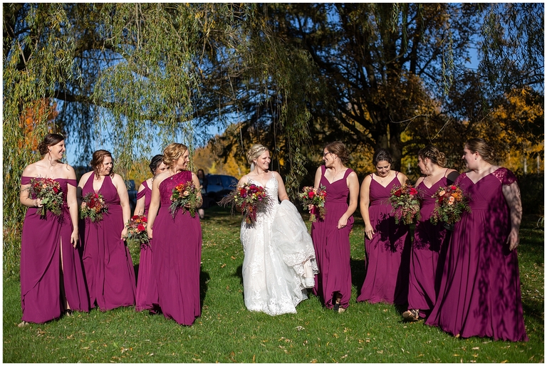 Stacy + Matt got married on one of the MOST gorgeous fall days of 2020. Their wedding date, October 10, 2020 was the most popular date for weddings last year, but I am so glad I was able to spend it with these two and their family and friends. Due to COVID, their large 300+ person wedding got downsized to approximately 60 people. I felt really privileged to be there and to witness their day. I know they put a lot of work, money, thought, and time into the details, decorations and plans for their day, so it was a bit of a disappointment to not have all their guests see the beautiful results. But they got married an everything fell perfectly into place. I have said it once, and will say it again, if you can plan a wedding during Covid, you can get through anything together! They were married at Stacy’s childhood church in Halder a few miles from the family farm. Following their ceremony, they headed to their property where the colors were in full glory. After pictures there with their wedding party and pup, we headed to the Green Valley Town Hall for dinner, dancing and the party. Stacy is a cousin of mine by marriage, so I have been a guest at and photographed many family weddings. Even though the whole crew wasn’t there, it was still full of fun, dancing, drinks, kind works and all the things that make a great wedding party. Congrats you two!