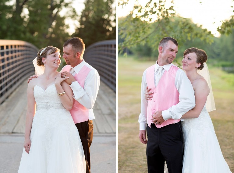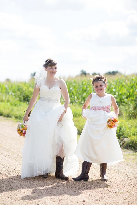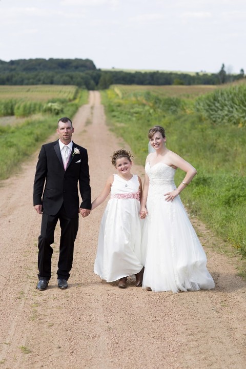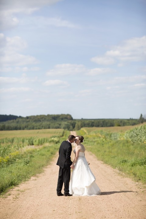 Stephanie + Isaac were married on a gorgeous summer Wisconsin day in August. They held their ceremony at the charming Zion Lutheran Church in Stratford. Following the ceremony, we headed out to a gravel road near their home (where they also took their engagement pictures) for family photos before heading to the reception at RiverEdge Golf Course. Stephanie + Isaac had so many fun personal touches at their wedding. Like the cowboy boots that they both wore and all the wood table centerpieces and the cake stand that Isaac made. All the little details and DIY added to the day to make it unique and really showcase them as a couple.