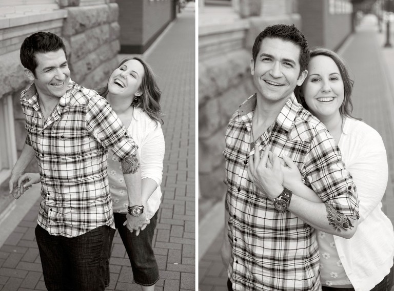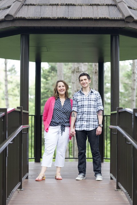 I was sitting in the coffee shop yesterday editing Tara + Jeremy’s engagement session and wondering if people thought it was odd that I was grinning at my computer screen. But Tara + Jeremy’s smiles are infectious and this was such a fun session that I couldn’t help but smile as I edited. I met Tara + Jeremy and their sweet, fluffy pup at Monk Gardens in Wausau for their engagement session. We had never been to the park and spent the evening exploring the little bridges and elevated walkways. Following the park, we headed to downtown Wausau for a different look. I’m looking forward to their October backyard wedding!