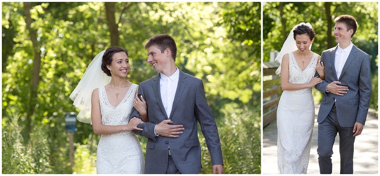 There is something magical about getting married in the woods. Kate + Mike were married under a huge oak at the Urban Ecology Center in Milwaukee. It is a perfect little forest gem in the city and was one of my favorite wedding venues ever. The shade kept the July heat at bay and there were surprisingly minimal bugs! Not only is the center is completely encompassed within nature in the city, there is a cool restored building for the party and tons of little areas for portraits around the grounds. Kate and Mike love to travel and their love story definitely shows that. They were engaged in Iceland, lived in Chicago, were married in Milwaukee, and moved to San Diego shortly after their wedding. Their wedding day was beautiful mix of classy and casual and the day was genuine to Kate + Mike. They were such a fun and gracious couple and I’m so glad to have been a little part of their beautiful love story!